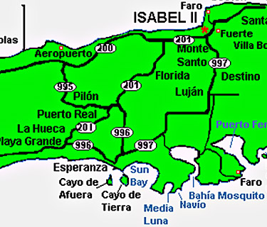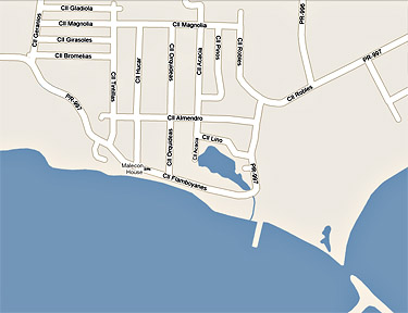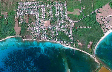 Now that satellite photos are so easily available, it's interesting to compare a map with a photo of the same location. If you look at the maps of Esperanza below, and then compare them to the satellite photos further down, you can get a better sense of the size of our village and it's relationship to the sea. The population of Esperanza is about 1,000.